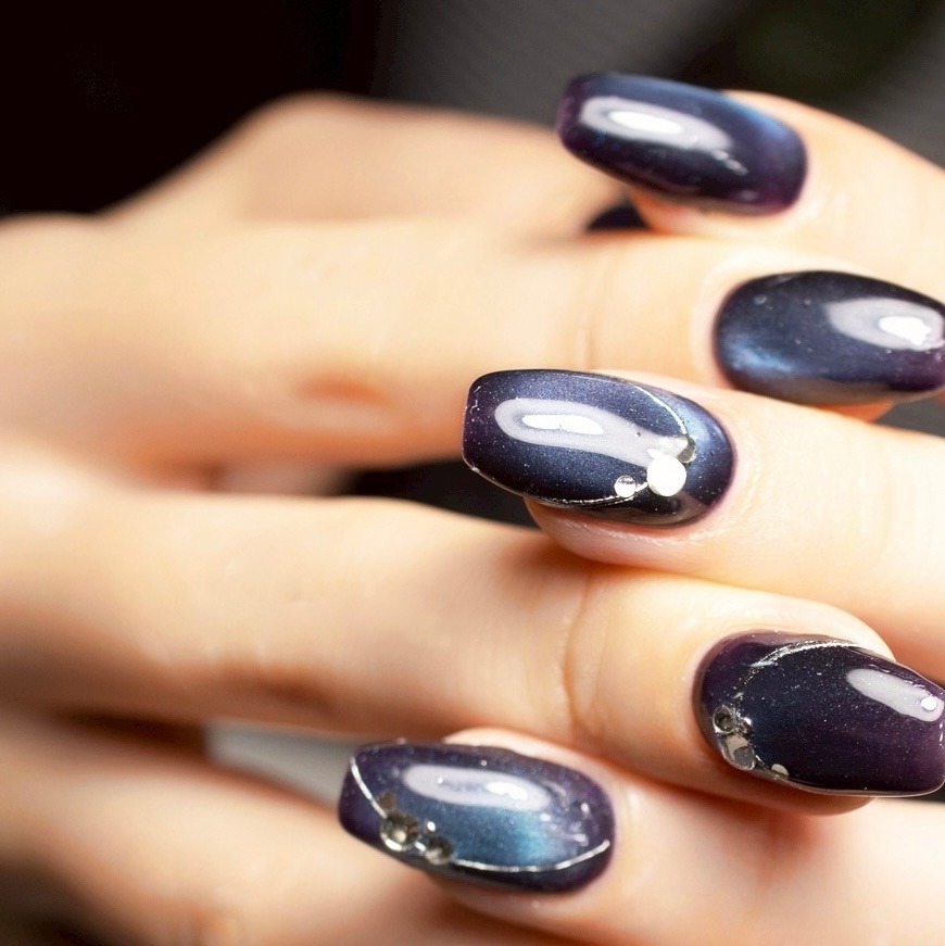 ネイビーネイルは落ち着きがあり、大人っぽい印象の定番カラー。