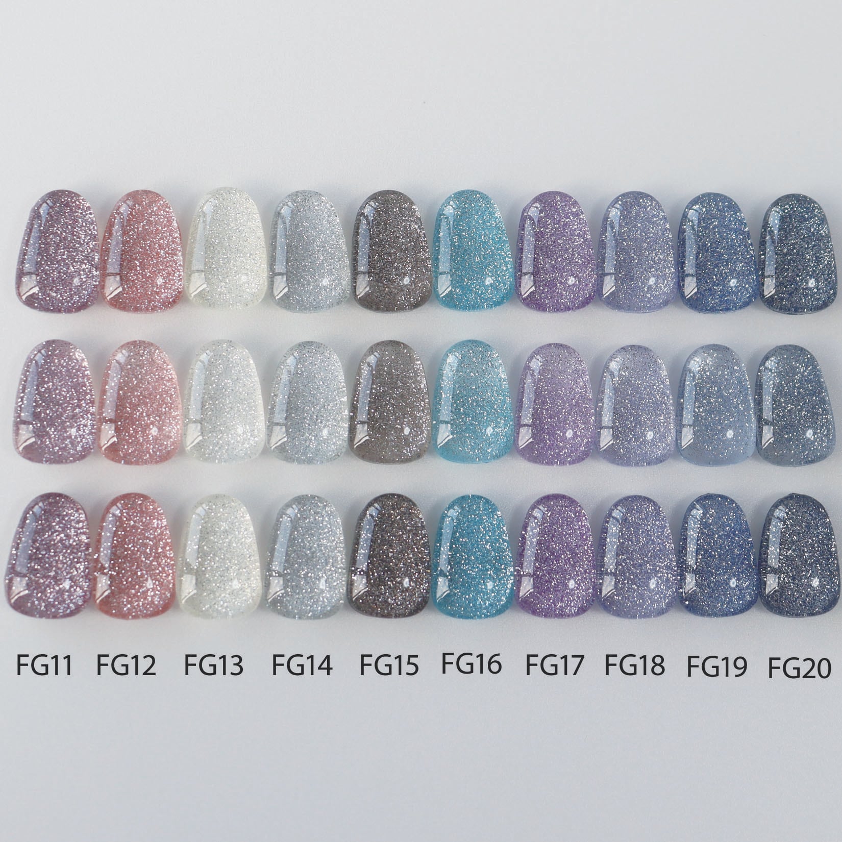 「ブルー・パープル・シルバー」を中心にした、寒色系のジェルネイルカラーセット。