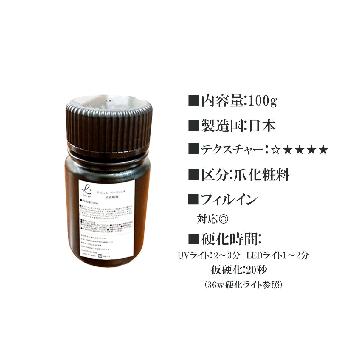 ベースジェル ベースコート 国産 フィルイン対応 ジェルネイル 100g クリア 透明感 UV LED対応 クリアジェル 爪に優しい 硬め もっちり 爪に優しい 化粧品登録